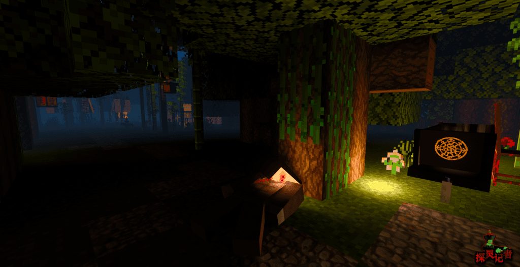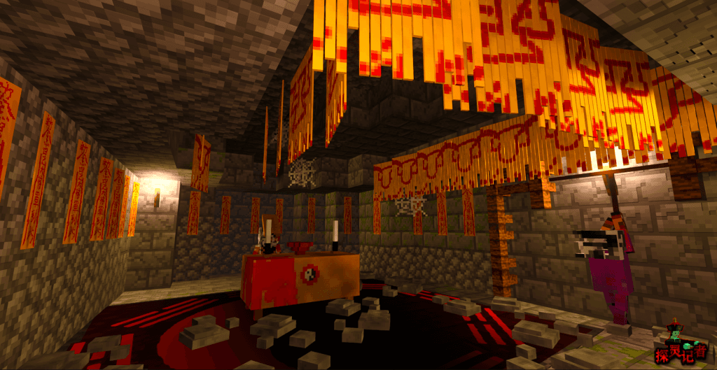 本地图与以往恐怖地图除了在风格上不同外,也在吓人手段上有所不同,比如地图中没有一张鬼脸贴图,用的比较多的是3D物品吓人,鬼怪模型吓人,以及恐怖的氛围感(古风)。地图中也运用了UI选项,过场、场景动画,自定义模型动画等等。